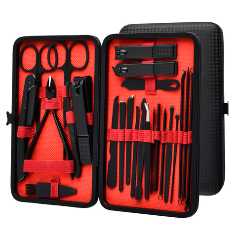 Oem Biểu Tượng Tùy Chỉnh 18-Mảnh Móng Chân Kit Màu Đen Thép Không Gỉ Nail Công Cụ Cho Chăm Sóc Cá Nhân Làm Móng Tay & Móng Chân Bộ
